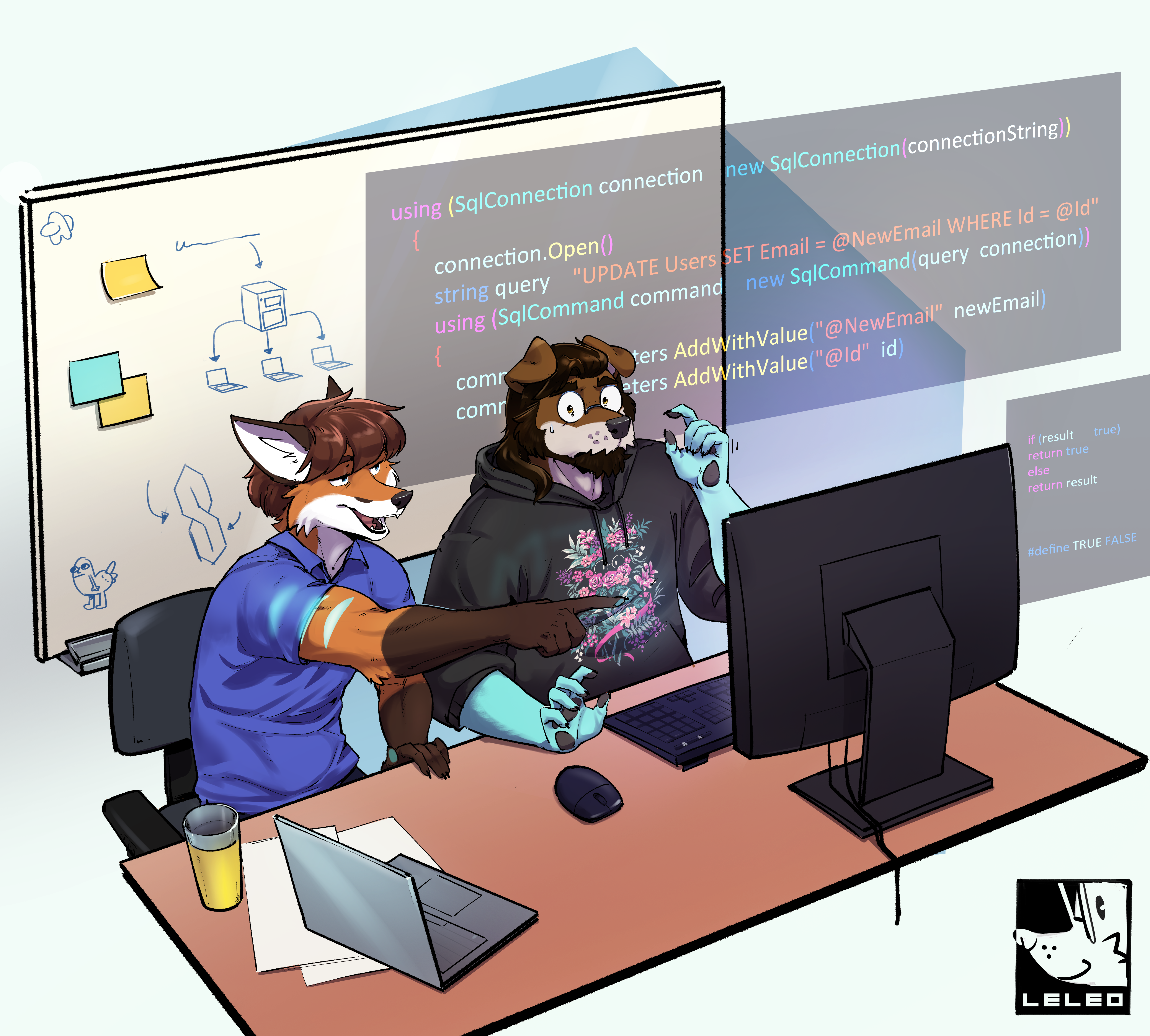 Xavier and Maxis trying to get some code to work.. artist: Leleo